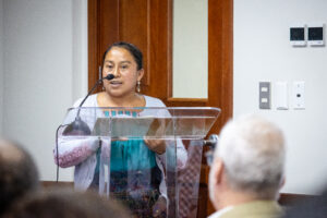 Durante la presentación, Olga Tun, participante del proyecto, compartió cómo este tipo de alianzas fortalecen la salud y la organización comunitaria: