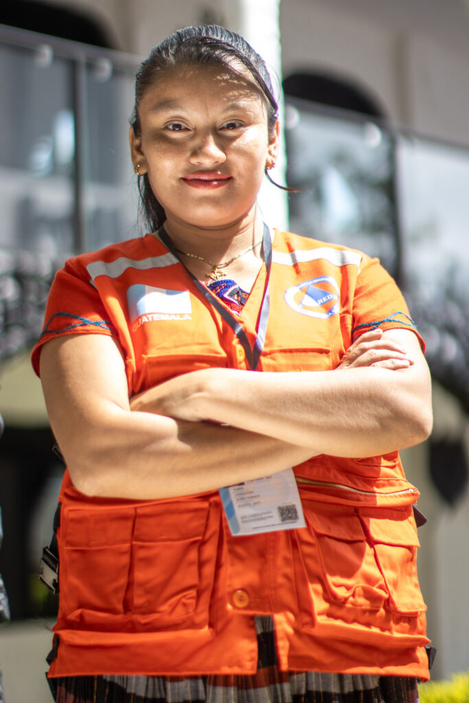 Madre de dos hijos, combina sus responsabilidades familiares con su labor en la Coordinadora Local para la Reducción de Desastres (COLRED), donde participa en el área de evaluación de daños y apoya la recopilación de información comunitaria.